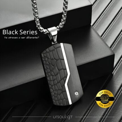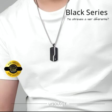 “Fuerza y Estilo en Negro y Plata” – Cadena Plateada con Dije Militar Negro – Colección Black Series