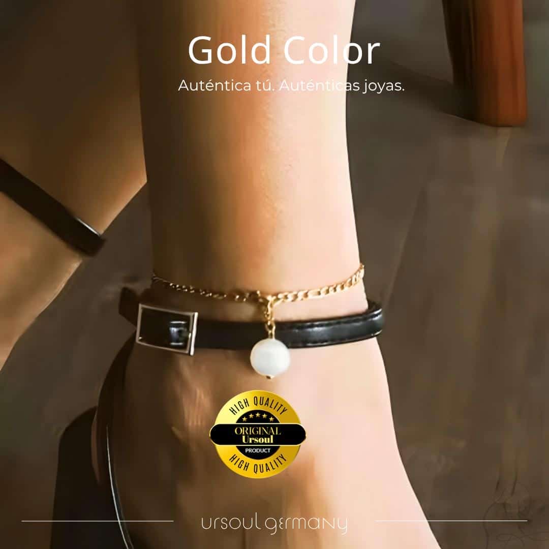 Siente la elegancia que danza con cada movimiento con la Tobillera Destino Dorado – Perla Fígaro de Ensueño de la Colección Gold Color. Esta exquisita tobillera abraza tu tobillo con un diseño que combina la sofisticación de la cadena Fígaro, con sus eslabones delicados que reflejan la luz de manera única, y la pureza de una perla cultivada que pende con gracia. El cálido tono dorado realza la suavidad de la perla y la textura de la cadena, creando una armonía visual que realza tus pasos con un toque de distinción y encanto. Perfecta para lucir con sandalias o para añadir un toque de luz discreta a cualquier atuendo. Deja que el resplandor dorado y la elegancia de la perla se fusionen, realzando tu autenticidad con cada paso.